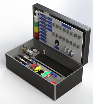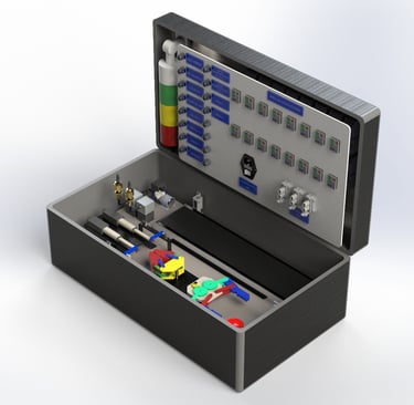 Transformamos la complejidad de la ingeniería industrial en soluciones portátiles de alta fidelidad. Diseñamos y fabricamos laboratorios móviles en maletines personalizados, desarrollados específicamente para cerrar la brecha entre la teoría académica y la práctica profesional.